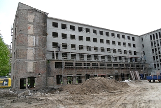 Das Gebäude wurde im Vorfeld des Jugendevents „Prora03“ entkernt. Die Raumaufteilung in der Nutzungszeit der Fallschirmjäger ist bislang unbekannt. Hinweise willkommen! In den achtziger Jahren waren hier untergebracht: Erdgeschoss: Kleiderkammern 1. OG: Baupioniere, zum Teil auch Matrosen 2. OG: die Schneiderei, die Bibliothek, das Traditionszimmer für das Pionierbaubataillon sowie Räume, die u.a. für Verhöre von der benachbarten „Verwaltung 2000“, eine Sondereinheit des MfS innerhalb der NVA, genutzt wurden. 3. OG: Baupioniere 4.-5. OG: Bausoldaten