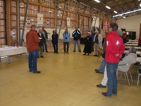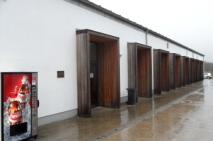 Die Mehrzweckhalle des Jugendzeltplatzes mit der Erinnerungstafel des Denk-MAL-Prora (Herbst 2010) und der Eröffnungsveranstaltung zur ersten Ausstellung über die Bausoldatengeschichte am authentischen Ort (Sommer 2009).